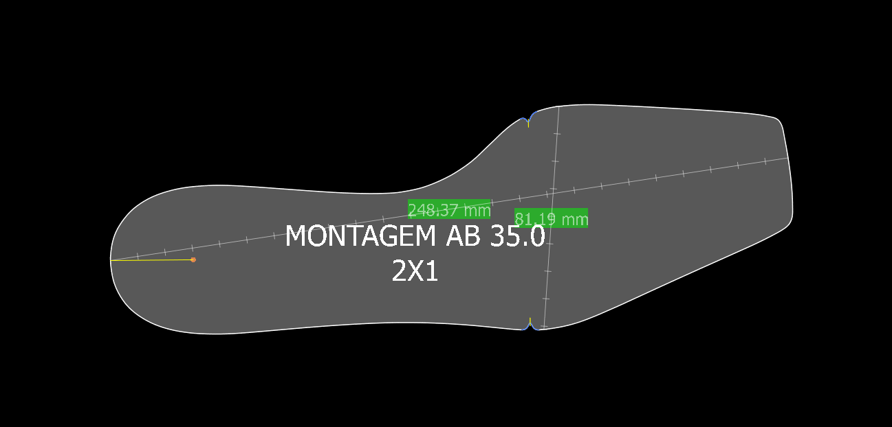A linha 54000 tem uma forma com bico mais quinado com uma planta de 248mm de comprimento e 82 mm de largura com altura de 60mm de salto