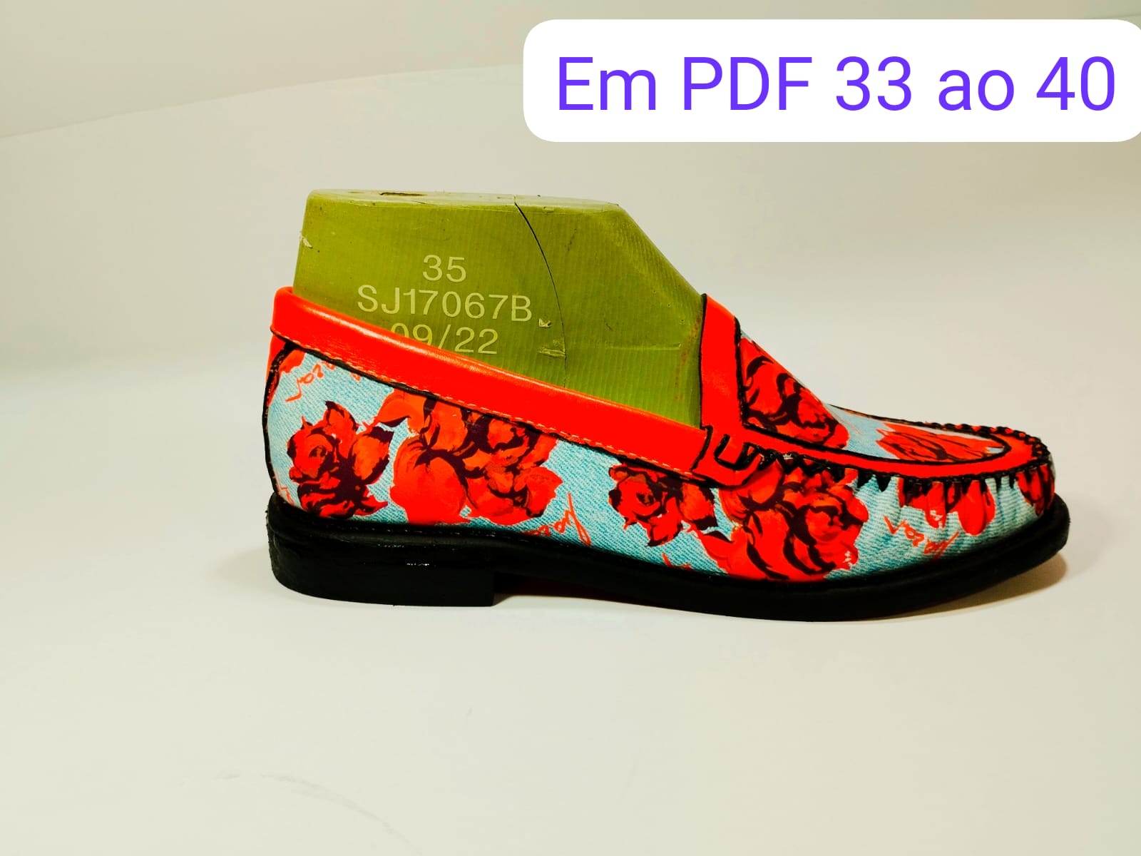 mocassim tubular com traseiro, colarinho e pala vazada com detalhe da pala, traseiro e colarinho.