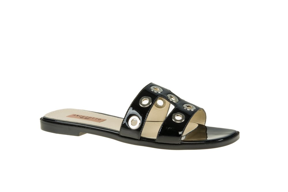 É uma linha de sandália rasteira de salto de 0,8 mm a 15mm de altura com planta da palmilha com largura de 84mm e 236 mm de comprimento.