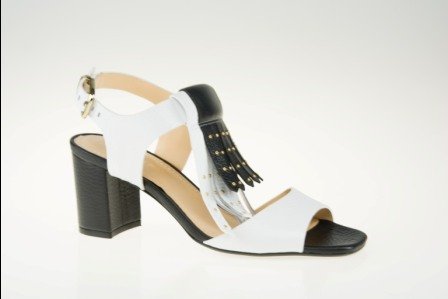 sandália dota afio com sistema de corte e recorte com franjas com metal e fivela 15mm no traseiro