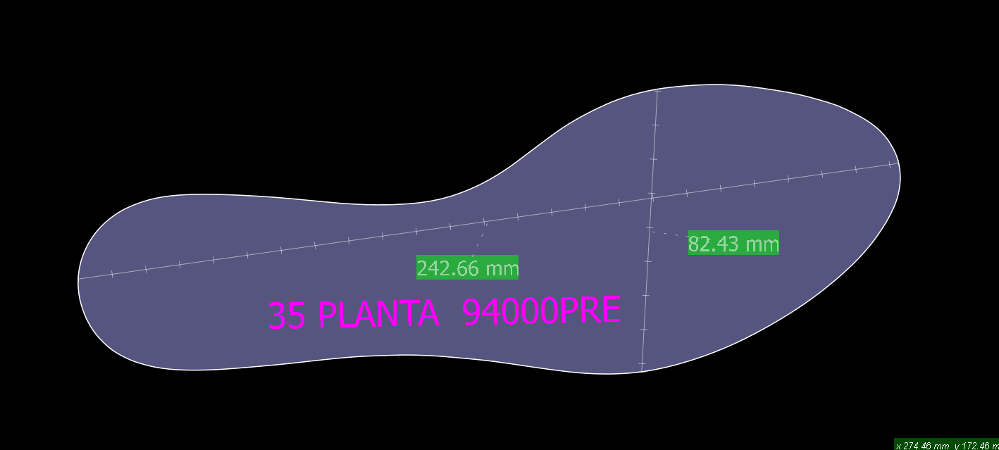 A altura da base do salto é de 85mm e dimensão da palmilha é de 82mm de largura por 242mm de comprimento.